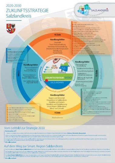 La administración del distrito de Salzlandkreis también presenta, con la estrategia de futuro Salzlandkreis 2030, propuestas sobre cómo puede seguir desarrollándose el distrito en los próximos diez años. Para ello, se han tenido en cuenta importantes factores regionales de futuro y se ha evaluado su influencia en la evolución futura de la región. Los ámbitos de actuación resultantes desde el punto de vista de la administración del distrito se han agrupado en cuatro grupos de actuación centrales: